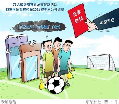 新華社圖表,北京,2026年1月29日 1月29日,公安部、國家體育總局、中國足協(xié)在北京聯(lián)合召開足球行業(yè)“假賭黑”問題專項整治行動新聞發(fā)布會,通報公安機關依法嚴肅查處足球領域賭球、假球等違法犯罪情況,以及中國足協(xié)對涉案人員和俱樂部的紀律處罰情況。陳戌源、李鐵等73人被終身禁止從事足球活動,天津津門虎等13家俱樂部被扣除2026賽季積分并罰款。 新華社發(fā) 曹一 作