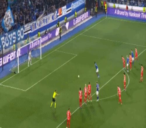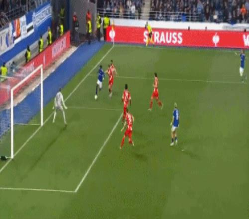第35分鐘,恩西索傳中,瓦塔拉搶點頭槌破門,斯特拉斯堡2-0