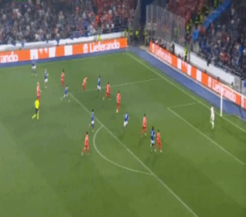 第74分鐘,恩西索助攻,埃梅加頭球破門,斯特拉斯堡4-0