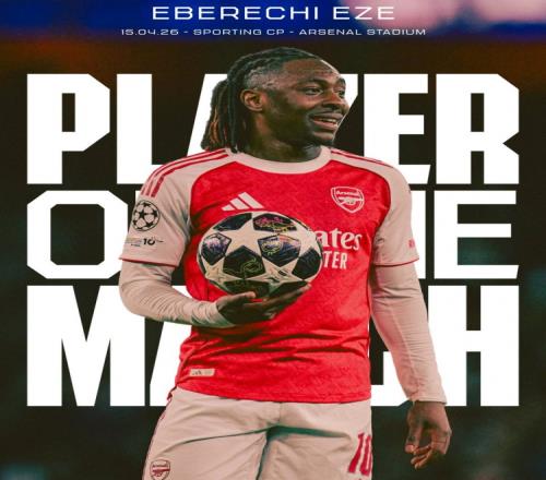 1次關(guān)鍵傳球+2次搶斷!埃澤當(dāng)選本輪歐冠阿森納隊(duì)內(nèi)最佳球員