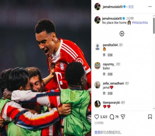 拜仁中場穆西亞拉在社交媒體曬出與隊(duì)友一起慶祝的照片,分享了晉級的喜悅,并配文寫道:“沒有比主場更好的地方了。”