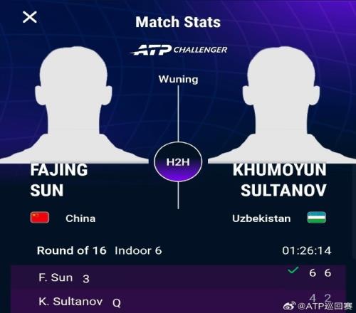 孫發(fā)京直落兩盤輕取蘇丹諾夫,晉級(jí)ATP武寧挑戰(zhàn)賽八強(qiáng)