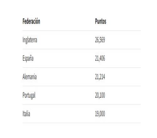 當(dāng)前英格蘭以26.569分高居榜首,西班牙和德國爭奪的就是第二名的這個(gè)額外歐冠席位。