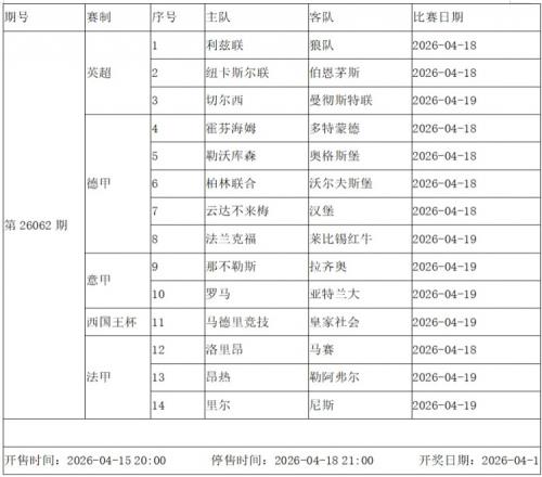本周六,歐洲賽事繼續(xù)激戰(zhàn)。傳足勝負(fù)彩第26062期的競(jìng)猜場(chǎng)次中,切爾西與曼聯(lián)的英超對(duì)決尤為引人關(guān)注。其他如多特蒙德將在客場(chǎng)對(duì)陣霍芬海姆,那不勒斯迎戰(zhàn)拉齊奧,剛剛晉級(jí)歐冠四強(qiáng)的馬競(jìng)技,將在西班牙國王杯決賽中與皇家社會(huì)展開交鋒。