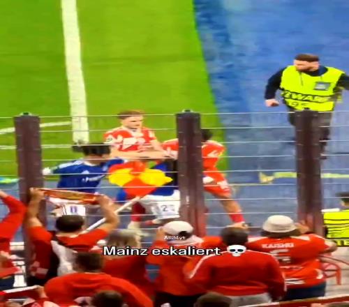 忍不了!白堡前鋒賽后舉角旗桿挑釁,美因茨中場推搡染紅引沖突