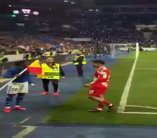 隨后兩隊(duì)多人趕到事發(fā)現(xiàn)場,沖突也逐漸升級,主裁判最終向阿米里出示了紅牌,戈多被出示黃牌。
