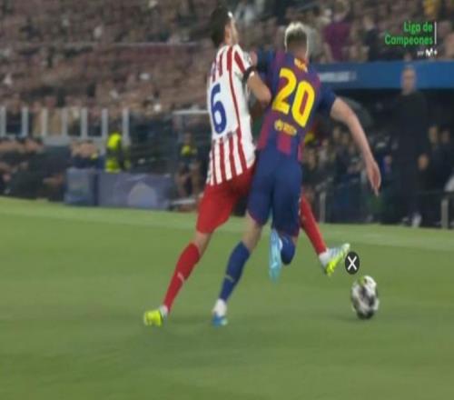 第9分鐘,科克對(duì)奧爾莫明顯犯規(guī)阻斷巴薩反擊,裁判未出示黃牌↓