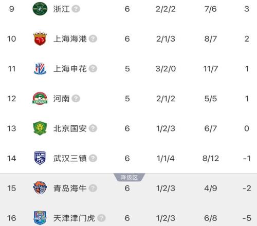 北京時(shí)間4月17日,新賽季的中超聯(lián)賽第6輪開賽。在本輪比賽之前,還有4支球隊(duì)處于負(fù)分的狀態(tài),包括超級(jí)杯冠軍國(guó)安,他們?cè)诒据喛蛻?zhàn)浙江。今晚有6場(chǎng)較量,泰山與海港上演重量級(jí)對(duì)決。現(xiàn)在,隨著蓉城1-0贏三鎮(zhèn),國(guó)安5輪0勝,津門虎3-0,中超最新積分榜出爐。