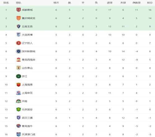 隨著泰山11海港蓉城10重慶20中超最新排名:國安逼近降級區(qū)