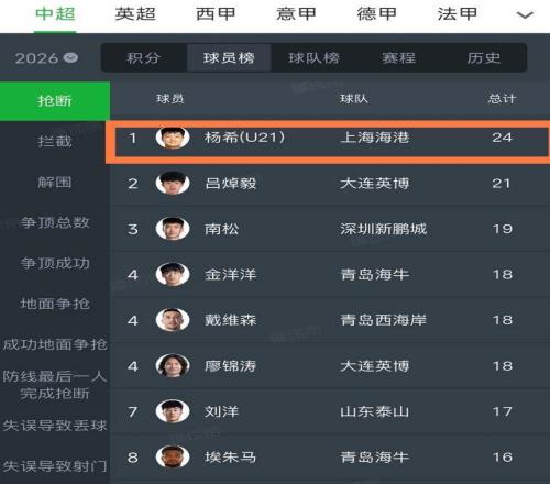 第三個(gè),楊希就是海港今年最超值的引援,甚至不輸新引進(jìn)的外援安佩姆和讓克勞德,今天他不僅打進(jìn)關(guān)鍵進(jìn)球,而且還有2次成功過(guò)人和2次造犯規(guī),進(jìn)攻能力完全開(kāi)發(fā)出來(lái)了,而在防守端,他更是以24次搶斷,高居中超搶斷榜第一,妥妥的中超搶斷王。