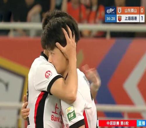 第37分鐘,李帥下底傳中,楊希門前推射打進(jìn)中超處子球,海港1-0領(lǐng)先山東!