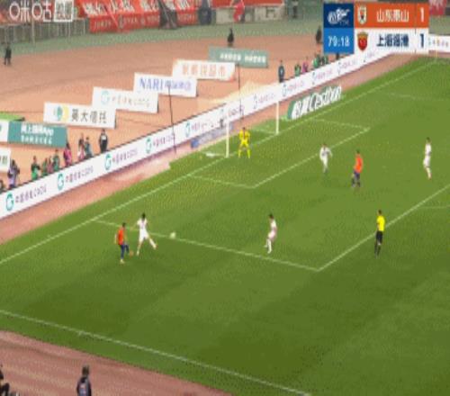 體育播報(bào)04月17日宣 中超第6輪,山東泰山vs上海海港,比賽第80分鐘,澤卡禁區(qū)內(nèi)得球,隨后轉(zhuǎn)身低射中柱。