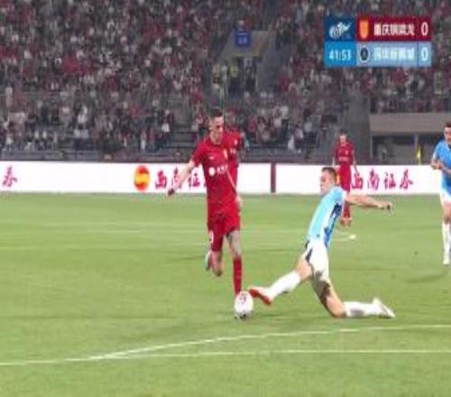 本科維奇失誤送直紅!新鵬城少打1人!第42分鐘,本科維奇停球失誤,隨后作為最后一名防守球員鏟倒肯帕努,裁判直接出示紅牌罰下本科維奇!↓