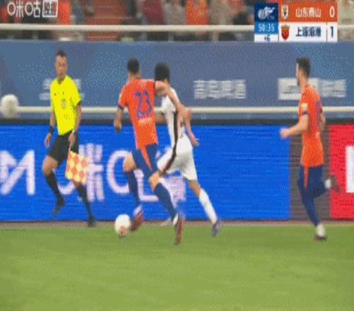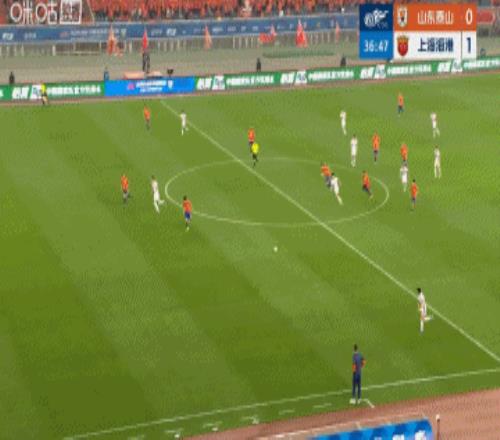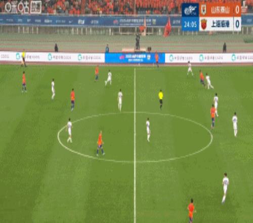 第50分鐘,泰山右路斜傳到禁區(qū)內(nèi)后點,卡扎伊什維利頭球攻門彈地后高出了球門↓