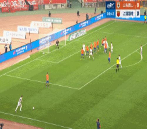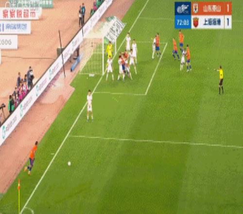 第72分鐘,泰山邊路任意球,角度極小,克雷桑直接打門!門前誰也沒有碰到,皮球旋進了后門柱位置!泰山1-1扳平海港↓