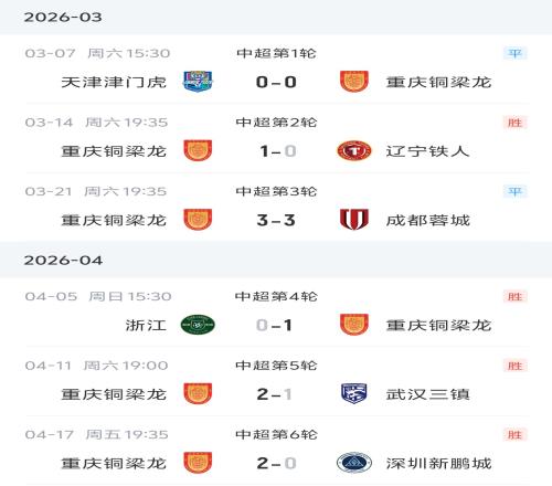 體育播報04月17日宣 中超第6輪,重慶銅梁龍2-0戰(zhàn)勝十人深圳新鵬城。38歲主教練劉建業(yè)首次執(zhí)教中超,就率領(lǐng)升班馬重慶銅梁龍取得開局4勝2平的不敗佳績,暫時登頂中超積分榜。