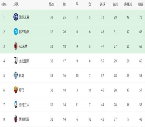 30!意甲爭(zhēng)冠已無(wú)懸念:國(guó)米3連勝+領(lǐng)先12分,爭(zhēng)四黑馬掉鏈子