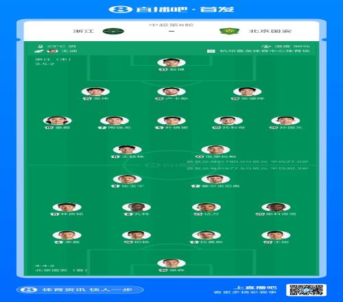 浙江vs國(guó)安首發(fā):4外援PK4外援,王鈺棟先發(fā),張玉寧、達(dá)萬(wàn)出戰(zhàn)