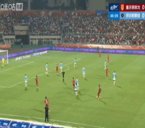 體育播報(bào)04月17日宣 中超第6輪,重慶銅梁龍vs深圳新鵬城。比賽第46分鐘,張英凱左路傳中被擋,陳純新得球兜射經(jīng)折射入網(wǎng),銅梁龍1-0領(lǐng)先十人新鵬城。