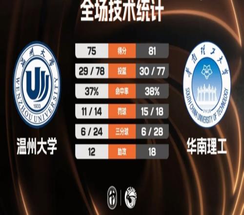 末節(jié)比賽,溫州大學(xué)終于找回狀態(tài),他們發(fā)起了兇猛的反撲勢(shì)頭,而華南理工的命中率有所下滑,場(chǎng)上分差最小時(shí)僅剩6分,但溫州大學(xué)終究未能完成逆轉(zhuǎn),最終華南理工81-75戰(zhàn)勝溫州大學(xué)。
