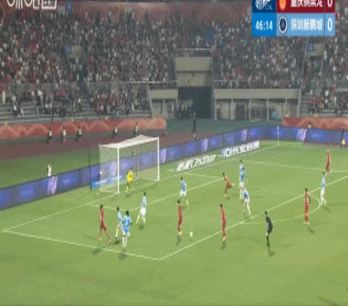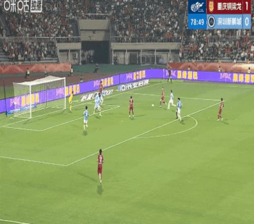 人數(shù)占優(yōu)的銅梁龍?jiān)谙掳雸?chǎng)開始后就立即加強(qiáng)進(jìn)攻,僅2分鐘便打破僵局!第47分鐘,陳純新在禁區(qū)前沿接隊(duì)友橫敲,稍作調(diào)整后起腳遠(yuǎn)射,皮球經(jīng)防守球員身體折射后變向,深圳門將猝不及防,只能目送皮球入網(wǎng)。