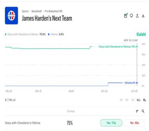 根據(jù)數(shù)據(jù)媒體Kalshi的預(yù)測(cè),詹姆斯-哈登留守騎士的概率高達(dá)75%,老鷹只有6%,籃網(wǎng)不足1%,因?yàn)轵T士隊(duì)內(nèi)部是對(duì)哈登非常滿(mǎn)意的,哈登為騎士出戰(zhàn)的26場(chǎng)比賽克村拿到20勝6負(fù)的傲人戰(zhàn)績(jī) 。