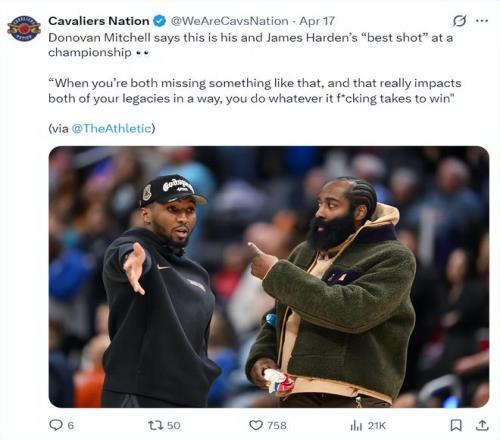 米切爾也在采訪中說(shuō)道:這是我們奪冠的絕佳機(jī)會(huì),這就是哈登選擇來(lái)這里的原因,哈登一直以來(lái)都保持著非常高的水平,我和哈登都缺少總冠軍,我們都需要為了歷史地位努力去拼總冠軍,我們會(huì)XX不惜一切代價(jià)去贏球。