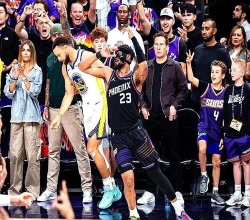 第四節(jié)決戰(zhàn),杰倫-格林撤步跳投命中,庫里三分強投立馬回應(yīng),得分已上雙。杰倫-格林晃飛追夢三分投進,隨后再過掉追夢高難度拋投打進,已經(jīng)砍下36分,太陽還剩5分鐘領(lǐng)先勇士15分。追夢和布克連續(xù)斗嘴均被驅(qū)逐出場,比賽失去懸念,最終,太陽111-94狂勝勇士17分,拒絕爆冷,壓哨鎖定最后一個季后賽名額。