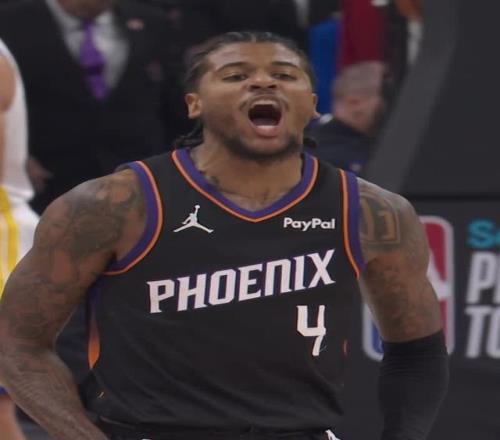 再看看太陽隊(duì)這邊,喬丹·古德溫不僅拿下了19分和9個(gè)籃板,還在很長一段時(shí)間里承擔(dān)起了死磕庫里的防守重任,絕對是贏球的大功臣。德文·布克也是穩(wěn)如磐石,雖然運(yùn)動戰(zhàn)12投僅5中,但他在罰球線上10罰全中,最終交出了20分、8次助攻和6個(gè)籃板的“準(zhǔn)兩雙”成績單。