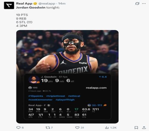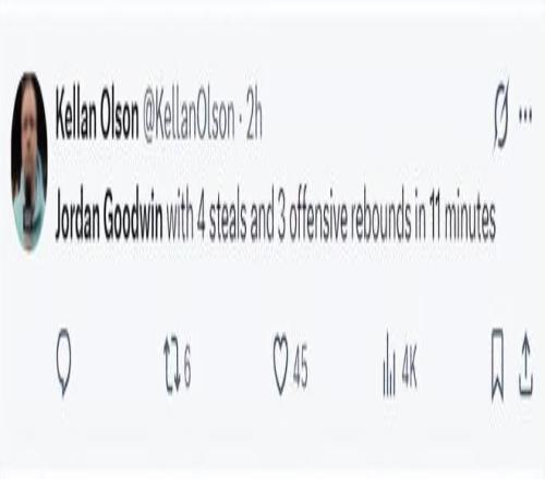 開(kāi)場(chǎng)短短11分鐘,古德溫就貢獻(xiàn)了3個(gè)前場(chǎng)籃板4個(gè)搶斷,讓太陽(yáng)隊(duì)記Kellan Olson贊譽(yù)有加。