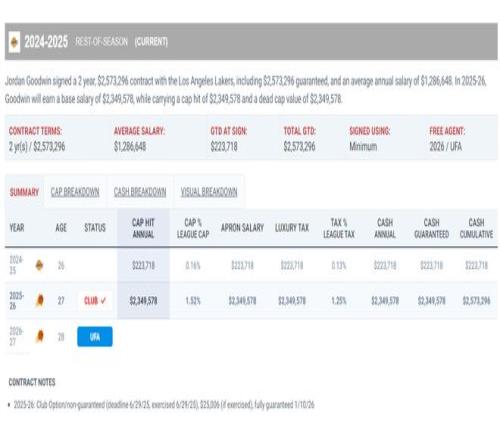 最關(guān)鍵的一點(diǎn),27歲的古德溫本賽季的薪水只有234萬(wàn)美元,他已經(jīng)坐穩(wěn)太陽(yáng)先發(fā)之位。
