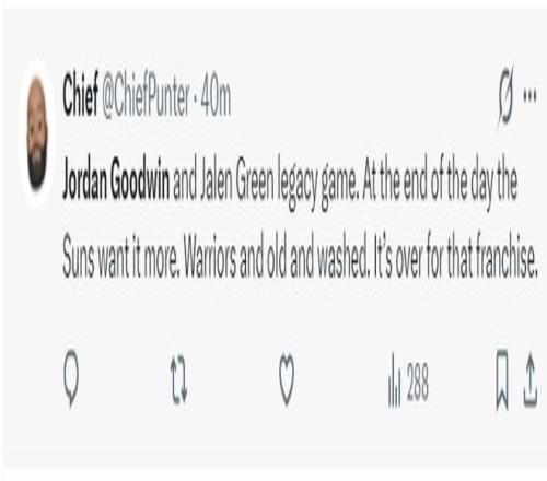 太陽(yáng)媒體:古德溫與杰倫格林對(duì)于這場(chǎng)比賽意義非凡,太陽(yáng)渴望勝利,很明顯勇士已經(jīng)老去,他們的時(shí)代已經(jīng)結(jié)束了。