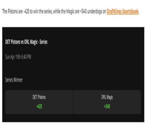 魔術(shù)VS活塞,目前美媒還沒有出活塞是幾場(chǎng)擊敗魔術(shù),但活塞晉級(jí)賠率-425,而魔術(shù)只有+340,這算是斷崖的支持活塞隊(duì),健康的坎寧安+杜倫不是魔術(shù)能抵擋的。