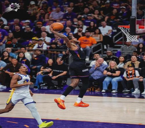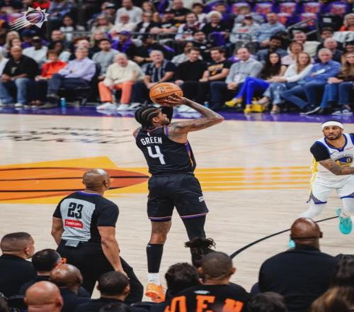 太陽(yáng)首發(fā):?jiǎn)痰?古德溫、杰倫-格林、布克、狄龍、伊戈達(dá)羅。勇士首發(fā):庫(kù)里、波杰姆斯基、桑托斯、追夢(mèng)格林、波爾津吉斯。杰倫-格林賽前表示:“打勇士一定要保持侵略性,不斷沖擊籃筐?!鄙弦粓?chǎng)打開(kāi)拓者,杰倫-格林狂砍35分。