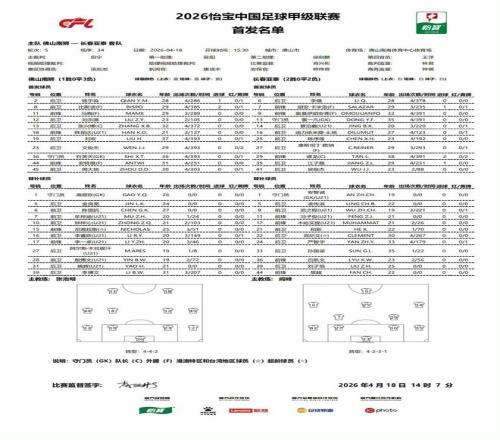 北京時(shí)間4月18日,中甲第5輪,佛山南獅主場(chǎng)對(duì)陣長(zhǎng)春亞泰。賽前首發(fā)公布。