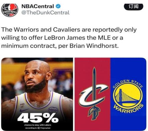 一隊(duì)是金州勇士,另一隊(duì)則是家鄉(xiāng)騎士;根據(jù)媒體爆料,兩隊(duì)都只愿意開出中產(chǎn),這背后自然各有算盤。