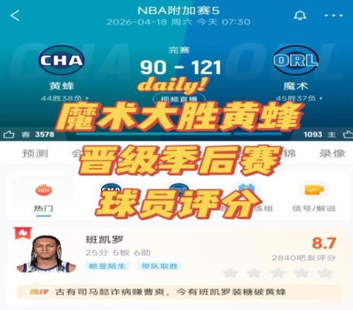 這場(chǎng)收官大戰(zhàn)看得人心弦緊繃——東部賽場(chǎng),魔術(shù)坐鎮(zhèn)安利中心,以121比90完勝黃蜂,全程掌控節(jié)奏,未給對(duì)手絲毫喘息空間。全隊(duì)五名首發(fā)悉數(shù)得分上雙,保羅·班切羅火力全開,狂攬25分、5籃板、6助攻,率隊(duì)毫無(wú)懸念摘得東部第八席位,將在季后賽首輪迎戰(zhàn)底特律活塞。