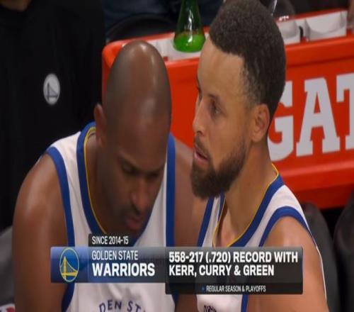第一節(jié)打完時,勇士就已經(jīng)15-33落后了18分;第二節(jié)勇士一度追到45-47,半場結(jié)束也只以45-50落后5分;