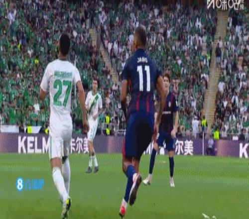 體育播報(bào)04月18日宣 亞冠精英聯(lián)賽1/4決賽,十人吉達(dá)國(guó)民2-1逆轉(zhuǎn)柔佛新山,比賽第37分鐘,吉達(dá)國(guó)民后衛(wèi)馬拉希倒鉤踢中柔佛球員雅伊羅面部被罰下。