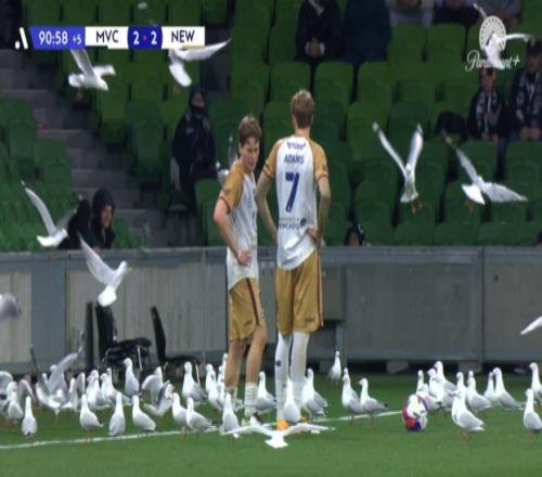 名場(chǎng)面!澳超數(shù)十只海鷗飛進(jìn)球場(chǎng),兩隊(duì)球員淡定繼續(xù)比賽