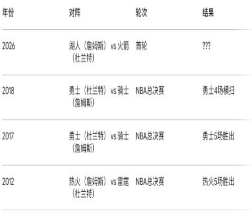詹姆斯與杜蘭特季后賽交手紀(jì)錄: