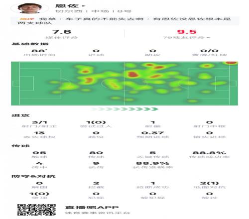 回歸首戰(zhàn)!恩佐本場數(shù)據(jù):1射正5關(guān)鍵傳球2攔截1搶斷,評分7.6