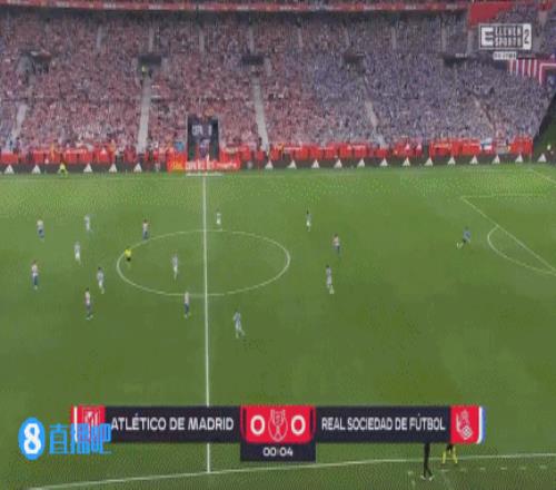 第19分鐘,格列茲曼左路橫敲,盧克曼低射遠(yuǎn)角破門,馬競1-1皇家社會?!?/p>