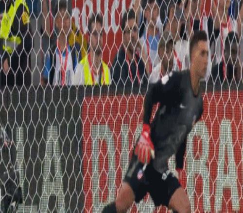 回過頭來科克右路橫傳,阿爾瓦雷斯禁區(qū)外高質量遠射,又擊中橫梁彈出。120分鐘戰(zhàn)罷依然不分勝負,比賽又進入點球大戰(zhàn)。