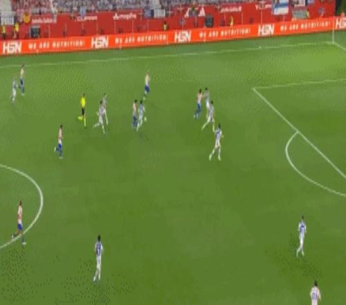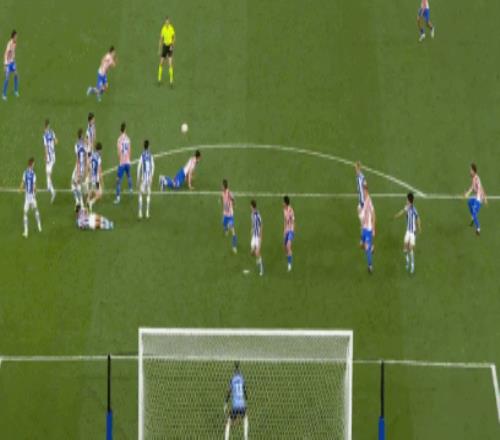開場僅19秒,馬雷羅后場大腳長傳,莫利納和朱利亞諾-西蒙尼連續(xù)冒頂,格德斯左路起球傳中,巴雷內切亞高高躍起頭球頂入遠角,皇家社會取得夢幻開局,1-0!
