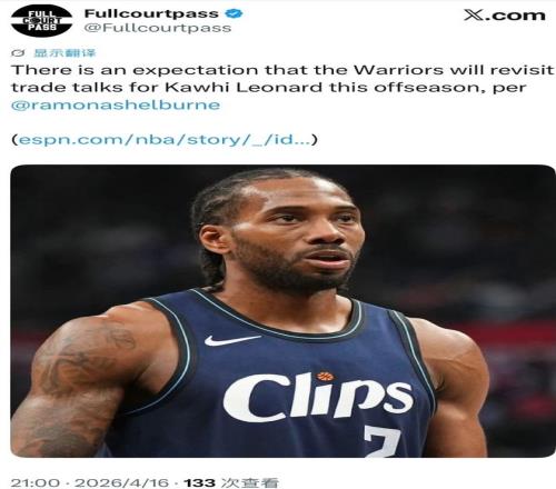 4月16日晚,根據(jù)洛杉磯記者蕾夢娜-謝爾伯恩的報道,金州勇士隊有意重啟科懷-倫納德的交易談判,在本賽季交易截止日前勇士就跟快船探討過,不過快船總裁弗蘭克說想要留住倫納德。