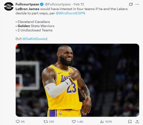 除此之外,根據(jù)ESPN記者布萊恩-文霍斯特的報道,在今夏有意簽下詹姆斯的球隊有騎士與勇士,不過騎士與勇士只肯給勒布朗底薪或中產(chǎn)合同。
