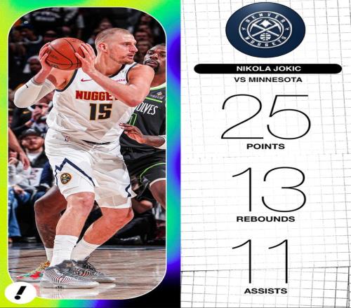 轟25+13+11又刷四紀(jì)錄!約基奇擊潰森林狼雙塔美記:無人能擋