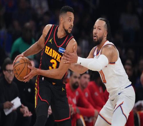 唐斯13中6(三分4中3)得到25分8板4助3帽、布倫森22中9(三分4中3)得到28分5板7助、哈特8中4得到11分14板5助3斷,他的籃板、防守表現(xiàn)給力,立下大功,阿努諾比9中6(三分3中2)得到19分8板、布里奇斯11分2板1助。