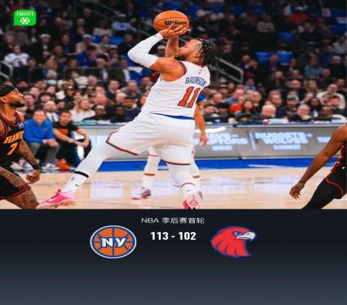 北京時(shí)間4月19日NBA 季后賽首輪,紐約尼克斯對(duì)陣亞特蘭大老鷹。首節(jié)尼克斯布倫森19分帶隊(duì)取得6分領(lǐng)先,次節(jié)老鷹麥科勒姆站出來追近比分,半場(chǎng)尼克斯57-55老鷹,下半場(chǎng)尼克斯多次將分差拉大至兩位數(shù),老鷹持續(xù)追分,末節(jié)尼克斯最大領(lǐng)先19分,最終尼克斯113-102老鷹,大比分1-0領(lǐng)先。